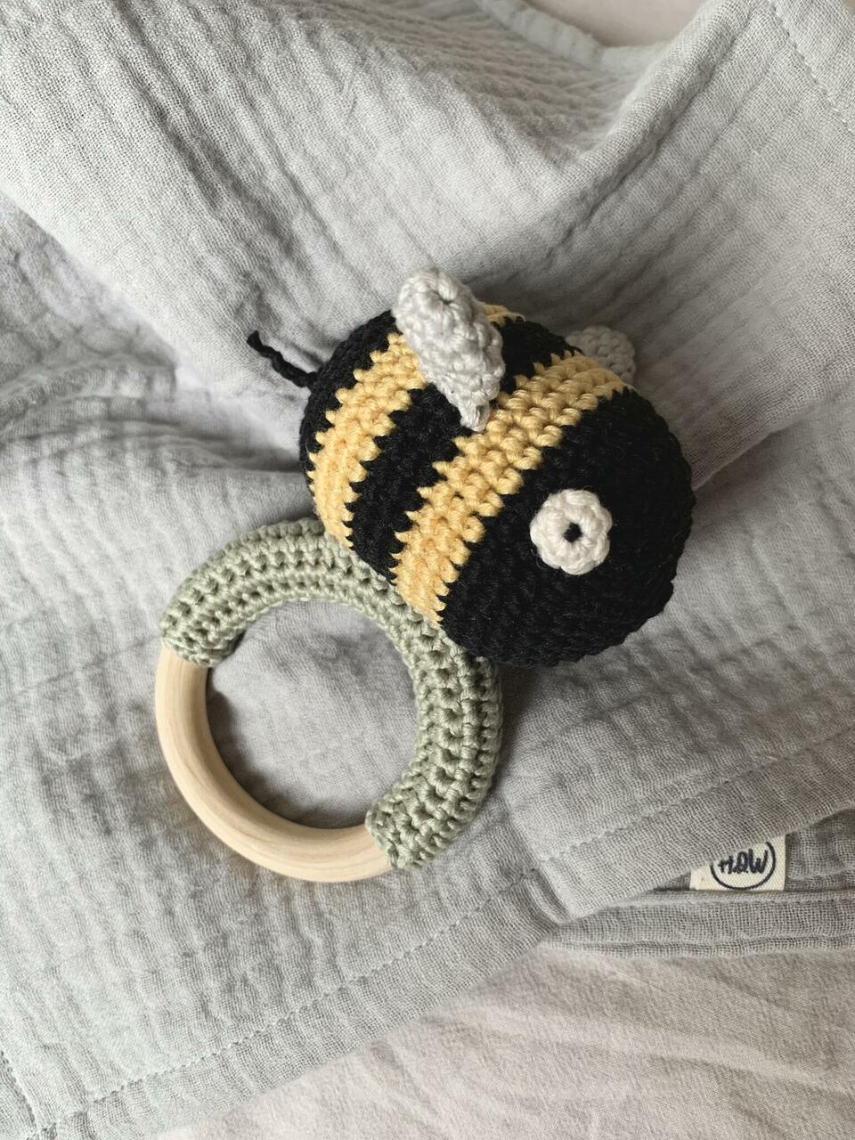 100% puuvillane ja Oeko-tex sertifikaadigaturvasilmade ja hüpoallergilise sisuganaturaalne töötlemata vahtrapuitkogupikkus 12 cm ja rõnga diameeter 7 cmvalminud käsitööna Eestispese 30 kraadi juures ja käsitsipuidust rõngast võib aeg-ajalt orgaanilise kookosõliga hooldada